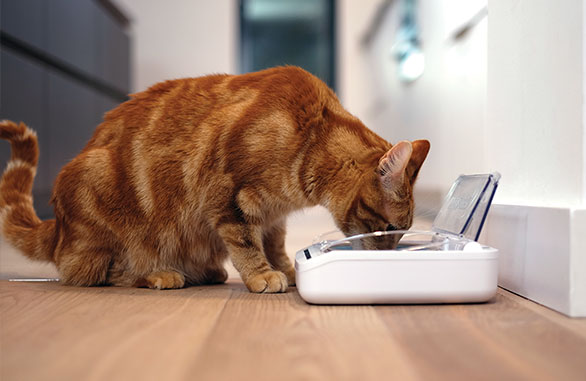 A tampa se abre quando seu bichinho de estimação se aproxima do pratoEle poderá acessar a comida a qualquer momento